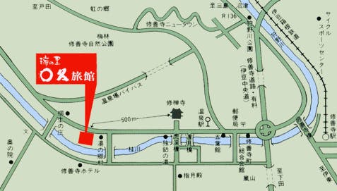 ■電車にて ・東京方面より 東京(新幹線こだま号:1時間) →三島(伊豆箱根鉄道:30分)→修善寺 ・大阪・名古屋方向より 大阪(新幹線こだま号:3時間) →三島(伊豆箱根鉄道:30分)→修善寺 ■お車で 東名高速・沼津IC → 伊豆縦貫道→ 伊豆中央道 → 修善寺温泉 瑞の里 〇久旅館