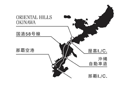やすらぎの地は、恩納の森のなだらかな丘陵に。自然の起伏を活かし、オリエンタルヒルズ沖縄のすべてのゲストルームから珊瑚の海を望めます。 木々に囲まれ、国道からも中を伺い知ることもできない、真の隠れ家です。約2万ヘクタールという広大な敷地に、ゲストルームはわずか14棟。最高のおもてなしを追求すると、このロケーションにたどりつきました。
