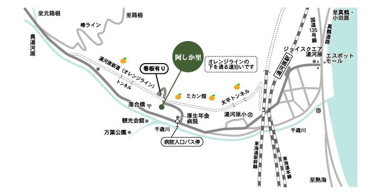 JR湯河原駅よりタクシーで約7分(約1,200円)