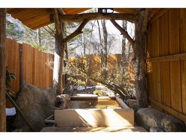 ・温泉: あり ・かけ流し: なし ・にごり湯: なし ・補足事項: (加温) 15:00~翌日10:00(館内3ヵ所) 15:00~20:00/夜明け~10:00(館外5ヵ所)