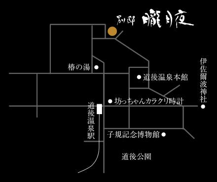 ■高速松山道松山ICより30分。 ■松山空港よりリムジンバスで45分。 ■JR四国予讃線松山駅下車→市内電車道後温泉駅下車。 ■松山観光港よりリムジンバスで35分。
