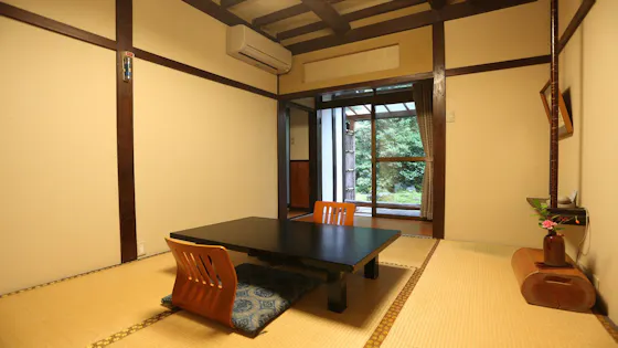 大和の間は、露天風呂付の和室10畳タイプ。お部屋からは庭園と山を眺められます。 また、清滝川の清流の音を聞きながら入る露天風呂は格別で、ココロとカラダをリセット頂けます。