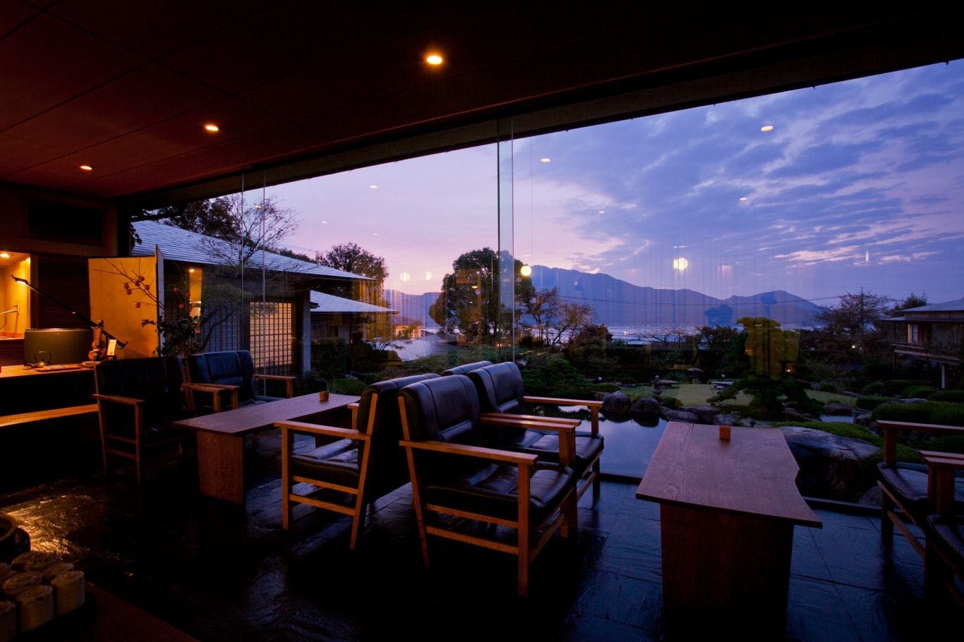 好きな場所で好きなことをする自遊空間。空の広さを感じてください。お庭を歩けば、隠れ家が。世界各国の専門家に選出される日本庭園ランキング12位の庭園です。 眼前に宮島と瀬戸を望み、背後は岩の美しい経小屋山ががそびえるなだらかな傾斜のある庭園です。中央にある池と名松を中心にした回遊式の配置を取り、そこに翼をひろげるように離れと母屋が建っています。夕暮れにお庭にでてみれば、そこにはお客様まで取り込んだ影絵ともいえる風情がございます。お客様同士の息を感じながら、プライベートを保つ。石亭の真骨頂です。海、山、空、月、星、すべてが借景に。