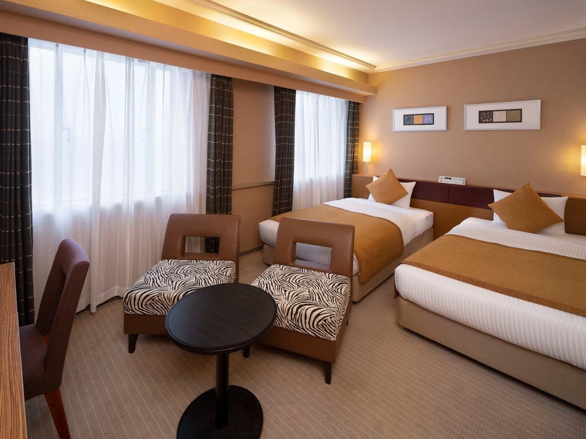 アートホテル上越の客室の中で最高級のお部屋のデラックスツインをご予約頂けます。ベッドはシモンズ社製のベッドを取り入れ、落ち着いた雰囲気の中で快適な睡眠をお約束致します。