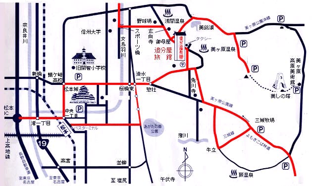 【お車でお越しの場合】 長野自動車道松本IC→美ヶ原温泉(約25分) 上信越道東部湯の丸IC→美ヶ原温泉(約1時間) 【電車でお越しの場合】 ○新宿 特急あずさ(約2時間30分)→松本 駅前バスターミナル 美ヶ原温泉行きバス(約20分)→辻堂バス停下車→徒歩30秒 ○名古屋 特急しなの(約2時間)→松本 駅前バスターミナル 美ヶ原温泉行きバス(約20分)→辻堂バス停下車→徒歩30秒