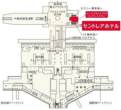 中部国際空港出発ロビー・到着ロビーから徒歩約2分 中部国際空港駅改札正面 名古屋駅より名古屋鉄道で約30分