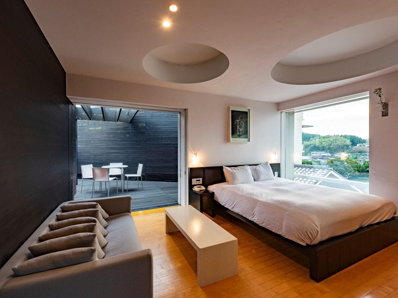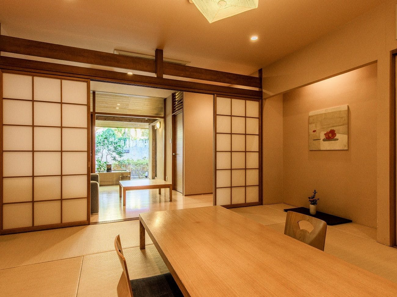 いつでもお好きなときにやわらかな天然温泉を楽しめる「クラブエリア 温泉付離れ」をはじめ、のどかな自然を望む「本館客室」、わんちゃんと過ごせる「温泉付山荘」など、多彩な客室タイプからお選びいただけます。川棚のやさしさにつつまれる安らぎのひとときをお過ごしください。