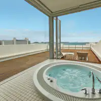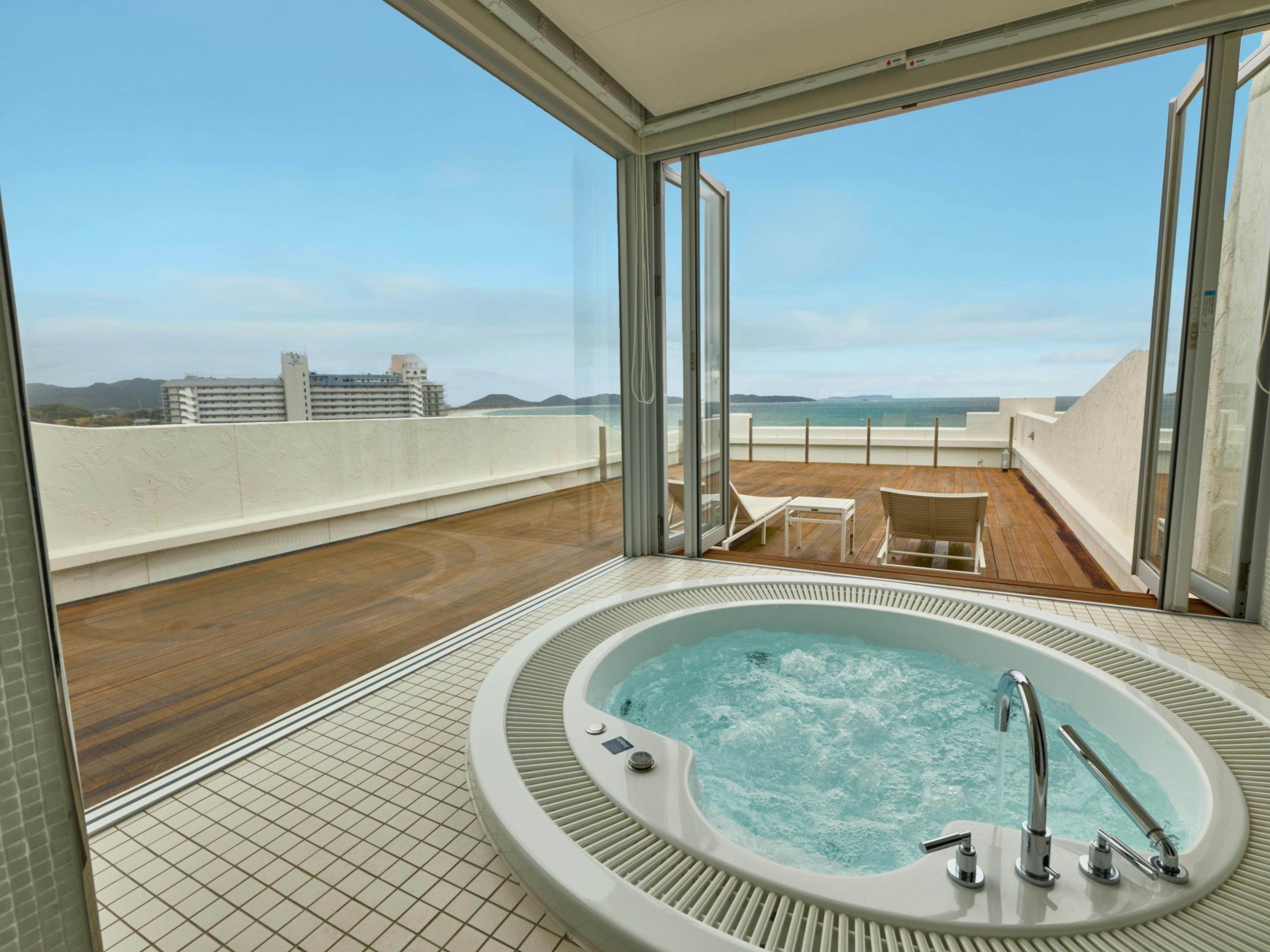 福岡県宗像市神湊の大海原を望む、全室オーシャンビューのオーベルジュ。 インターナショナルに活躍するフランス人デザイナーのカトリーヌ・メミが日本で初めてプロデュースしたホテル。 インテリアは、イタリア家具ブランドのカッシーナ・イクスシーがこのホテルのために手がけました。 料理は三ツ星レストラン出身の兵頭賢馬エグゼクティブシェフがプロデュースするフレンチレストラン「ロルキデ・ブランシュ」でお召し上がりください。 高級感漂うオーシャンビュールームで波の音に耳を傾け、本格フレンチに舌鼓を打つ、贅沢な休日を堪能ください。