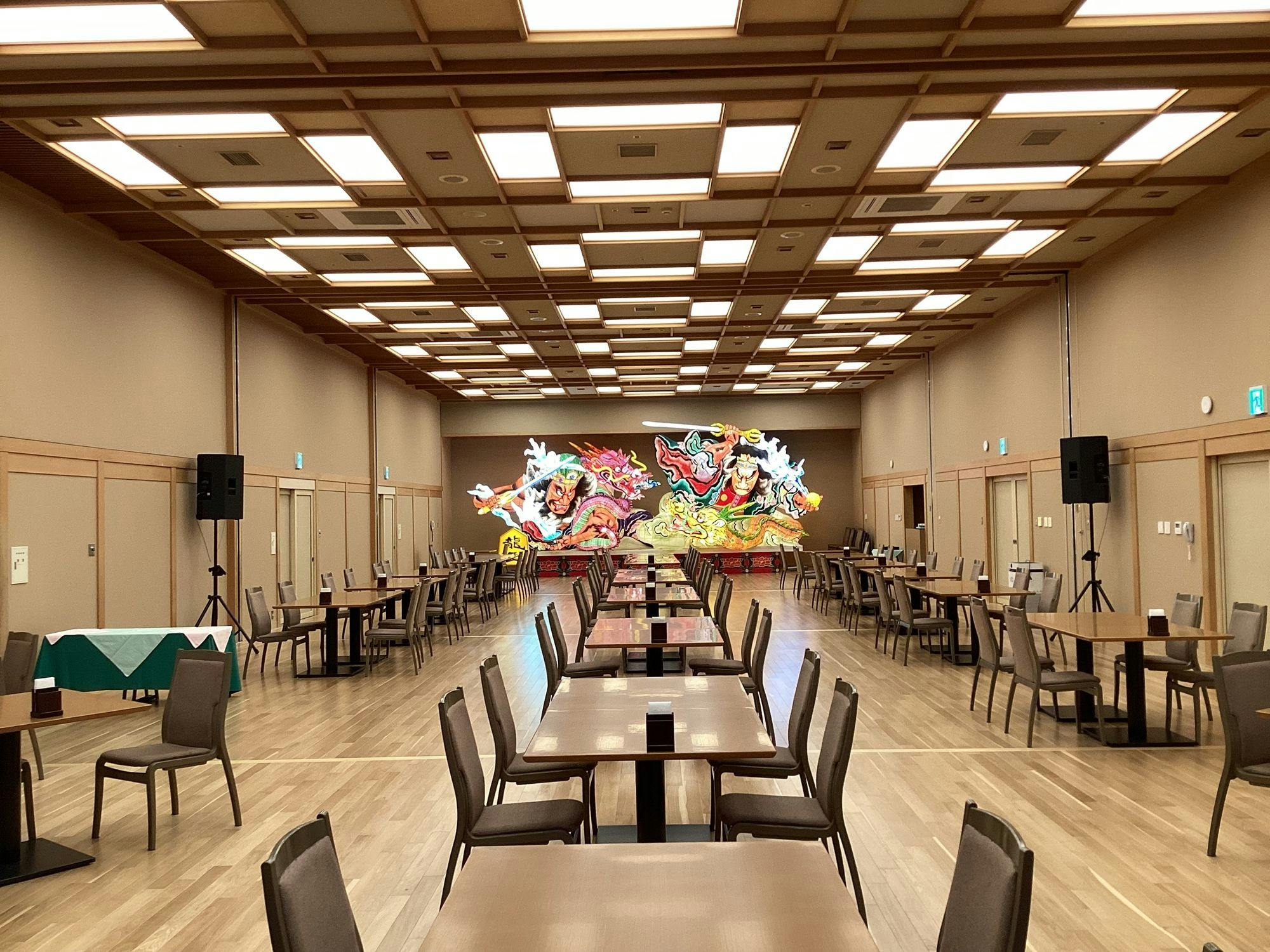 圧倒的な迫力を持つ2022年のねぶた大賞受賞「龍王」が見守るステージで繰り広げられる“ひと夜限り”のスペシャルなショー。 津軽民謡と津軽手踊りの演者に演目、ねぶたの囃子組や跳人は日替わりで鍛え抜かれたそれぞれの味わい、得意を賑やかに、軽やかに、力強くご披露します。 プロならではの粋を尽くした芸と祭りの熱狂をご堪能ください。 ※「ねぶた×津軽手踊り!じゃわめぎナイト」は専用プランを選択したお客様のみが体験できるイベントになります。イベント単体での観覧希望はホテルまでお問い合わせください。 -------------------------------------------- ・開催時間 19:45〜20:30 毎晩<休館日除く> ※休演の場合もございます。詳しくはお問い合わせください。 ・場所 2階 ねぶたダイニング「龍王」