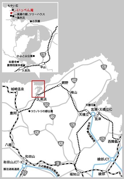 <電車で> ○大阪より JR福知山線経由:豊岡駅まで2時間20分 JR播但線経由:豊岡駅まで2時間50分 ※乗り継ぎ: JR豊岡駅より京都丹後鉄道(久美浜駅)まで15分 ○京都より JR山陰線経由:豊岡駅まで2時間10分 ※乗り継ぎ :JR豊岡駅より京都丹後鉄道(久美浜駅)まで15分 天橋立経由:京都丹後鉄道(久美浜)まで2時間50分 <お車で> ○大阪・神戸より 中国道・舞鶴道・北近畿豊岡道 (但馬空港IC下車)約2時間30分 ○姫路より 播但道・北近畿豊岡道 (但馬空港IC下車) 約2時間30分 ○京都より 京都縦貫道・山陰近畿自動車道 (京丹後大宮IC下車) 約2時間30分