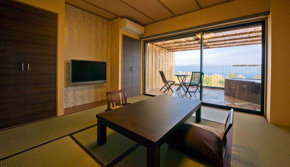すべてのお部屋に開放感ある大きな露天風呂。伊豆大島を望む絶景を独り占めできる至福の露天風呂をお楽しみください。