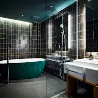 慶応3年に創業し、 150余年の歳月を重ねてきた厳島いろは。 玄関をくぐり、 誰にも会うことなく入れる客室は左官職人が手仕事で仕上げた 化粧漆喰や漆和紙素足に心地よさを感じる木材など、 和を感じる設え。 フィン・ユール、フリッツ・ハンセンを はじめとする北欧家具のデザインが、 和の伝統建築に共鳴し モダンさと機能性を備えた 館内となっております。