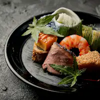 騎牛門をくぐり抜け広がる風情ゆかしい空間は 創業天正年間、440年もの時を経てなお人の心を癒します。 食材にこだわり伝統の技で魅せる懐石料理は、名物「麦飯ととろ汁」や 「甘鯛(ぐじ)」をはじめ、そのとき最も輝く旬の食材でお作りいたします。 どうぞ日々の疲れを忘れ、心安らぐひと時をお過ごしください。