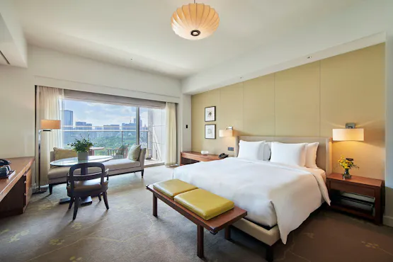 世界的権威のあるトラベルガイド「フォーブス・トラベルガイド」のホテル部門にて、2016年に日系ホテルとして初めて5つ星を獲得して以降、毎年連続で5つ星の評価を獲得。2025年には、「ミシュランガイド」が発表するホテルの卓越性を示すミシュランキーにて最高評価である3ミシュランキーに2年連続で選ばれました。 落ち着きと品格に満ちた「最上質の日本」が体験できるパレスホテル東京は、都心にありながら豊かな水と緑が溢れる丸の内1-1-1に佇みます。 約6割の客室がバルコニー付き。窓を開け外に出ると、皇居外苑の豊かな緑が楽しめます。 700点以上のアート作品に彩られた館内には、「ミシュランガイド東京2025」一つ星レストランであるフランス料理 エステール by アラン・デュカスをはじめ、会席の名店として長年多くの方々から愛される日本料理 和田倉や、和田倉濠に面したテラス席が人気のオールデイダイニング グランド キッチンなど、10の多彩なレストラン&バー、2024年より「フォーブス・トラベルガイド」のスパ部門にて5つ星の評価を得続けている、日本唯一のエビアン スパ 東京を備えています。 世界が認めたラグジュアリーホテル パレスホテル東京でぜひ、上質な一日をお過ごしください。