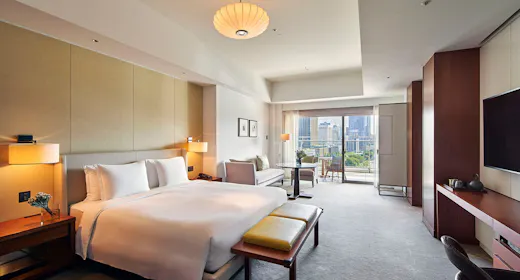 丸の内にありながら豊かな自然に恵まれた絶好のロケーション。お部屋の窓を開け、目の前に広がる緑の景色と心地よい風を感じながら、「パレスホテル東京」で至福のひとときをお過ごしください。 ※画像はイメージです ※客室のレイアウトは各部屋によって異なる場合がございます。