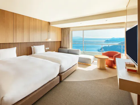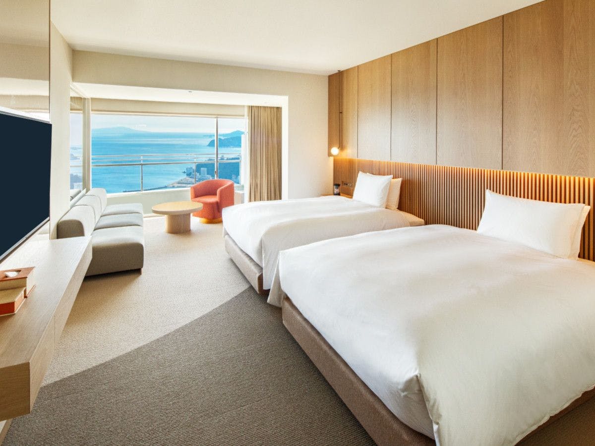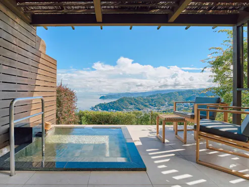 花火が打ち上げられる熱海湾は客室・レストランからご覧いただけます。