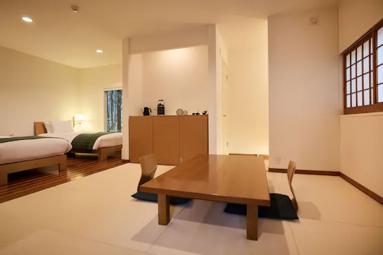 離れを予約していたが、妻が寒がりのため本館へグレードアップしてもらった。本館設備は部屋内の全箇所に床暖房がついており、照明や空調などの設備が素晴らしい。価格が高くなったのが全く気にならないほど快適に過ごせた。車で行ったが場所が判りにくかった。カーナビで目的地周辺になったら由布院側を背にした軽い上り坂の左側にある、焦茶色の看板の先の狭い下り坂を下っていくと見つかる。スタッフの皆さんもとても親切な方々で素晴らしい思い出になる滞在でした。他のホテルに泊まれなくなりそうです。