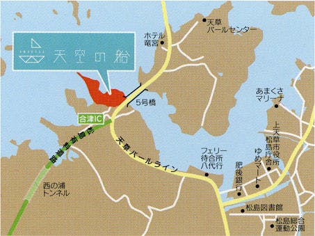 【駅より】JR三角駅よりお車にて約25分 【空港より】天草空港よりお車にて約50分 【お車で】九州自動車道松橋ICより天草方面へ60分、松島有料道路手前を右折。
