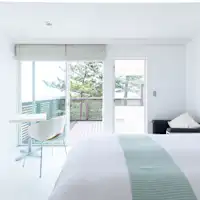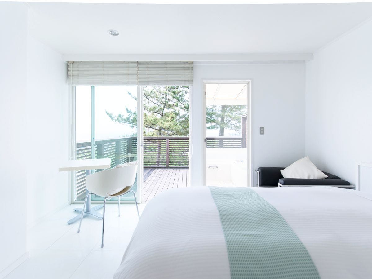 エントランスを抜けて最初に出迎えてくれるのが、大きな窓に映る海の風景と洗練されたインテリア。世界で活躍する工業デザイナー奥山氏が率いる「山形カロッツェリア」の家具が上質感を高めます。この空間から始まるご滞在に、ウェルカムドリンクは特性のサングリアでお出迎え。白を基調としたスタイリッシュなツインルームや和モダンの客室で、日々の喧騒から離れ寛ぎに満ちた安らぎのひとときをお過ごし下さい。