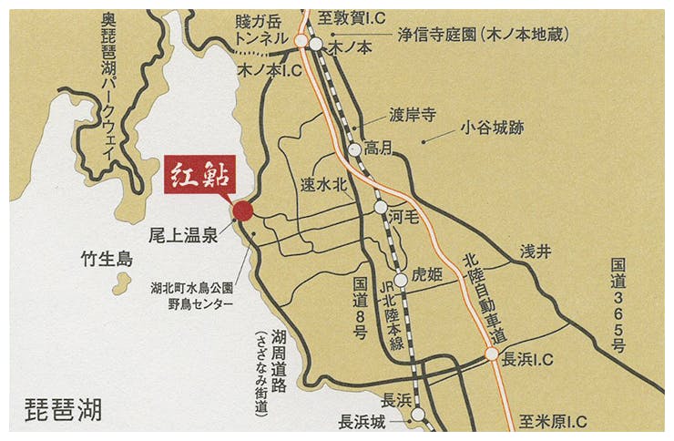 北陸自動車道「長浜I.C.」より約20分、「木之本I.C.」より約15分。