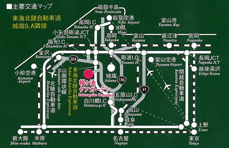 ■お車でお越しの場合 東海北陸自動車道・福光ICより約8分 ・福光IC出口から信号を直進して道なりに約8分 ・城端(じょうはな)SA内に駐車したまま歩いてご来館いただくこともできます。城端サービスエリア第2駐車場より徒歩でご来館ください。 ※城端サービスエリアでの折り返しは出来ませんので、ご注意ください。 ■電車でお越しの場合 【東京から】 東京駅(北陸新幹線)→新高岡駅(城端線)→城端(じょうはな)駅 【名古屋から】 名古屋駅(特急:米原経由・北陸本線)→高岡駅(城端線)→城端(じょうはな)駅 【大阪から】 大阪駅(特急:湖西線経由・北陸本線)→高岡駅(城端線)→城端(じょうはな)駅 JR城端駅より車で約8分 ・JR北陸本線「高岡駅」で乗換、JR城端線「城端駅」下車