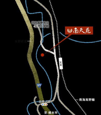 【大阪から】 ■車以外 南海高野線難波駅~天見駅下車すぐ ■車 近畿自動車道もしくは阪和自動車道~美原北IC~R309~R170~R371~出合いの辻交差点左折~天見駅左下すぐ 【東京から】 ■車以外 JR大阪駅乗換~南海高野線難波~天見駅下車すぐ ■車 東名自動車道から名阪自動車道~美原北IC~R309~R170~R371~出合いの辻交差点左折~天見駅左下すぐ
