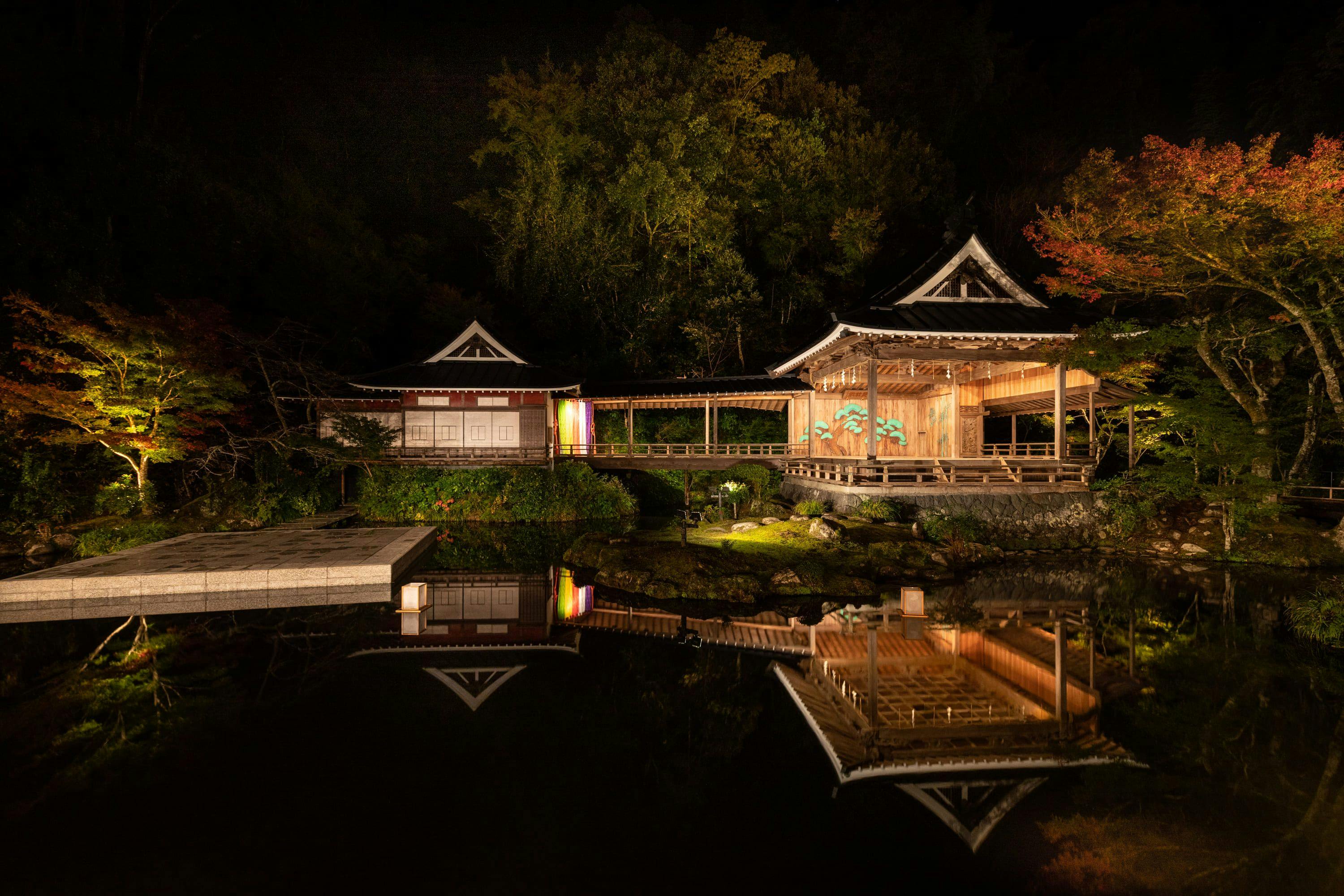 新型コロナの世界的流行で長いこと延期になっていた先輩友人お二人の還暦祝いに利用させていただきました。2連泊だったのですが同じお部屋を連続して予約することが出来ず、初日と二日目は別々のお部屋になってしまったのですが、これが大正解!でした。松風のお部屋は能舞台を2階から眺めることが出来て窓からの景色はそれは素晴らしかったです。夕刻の水上での太鼓の演奏会も雄大で楽しめました。もちろん、お料理も一皿一皿全てが見た目も美しく、梅の時期に合わせた紅白の梅型のお皿や富士山のイラストが描かれたおちょこなど、次から次に楽しめました。生ビールの泡はなんと富士山の形をしていました!お料理はミシュラン三つ星だけあって、どれも趣向を凝らしたもので、心から堪能できました。お部屋の担当になってくださった女性の方も心配りが自然で先輩方にも大層喜ばれました(お若いのに素晴らしく、見習わねばと思いました)。本当に素敵な思い出になりました。スタッフの皆様、大変お世話になりありがとうございました。