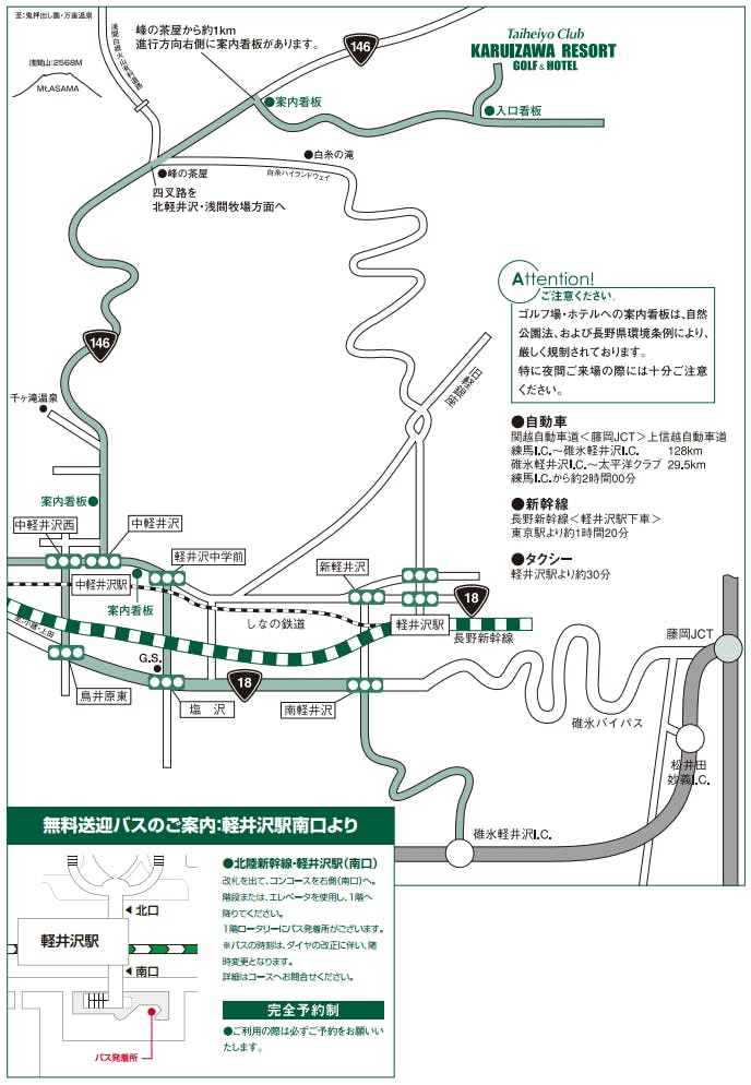 上信越自動車道碓井軽井沢ICより国道18号146号経由 太平洋クラブ看板を右折、ICより約40分