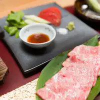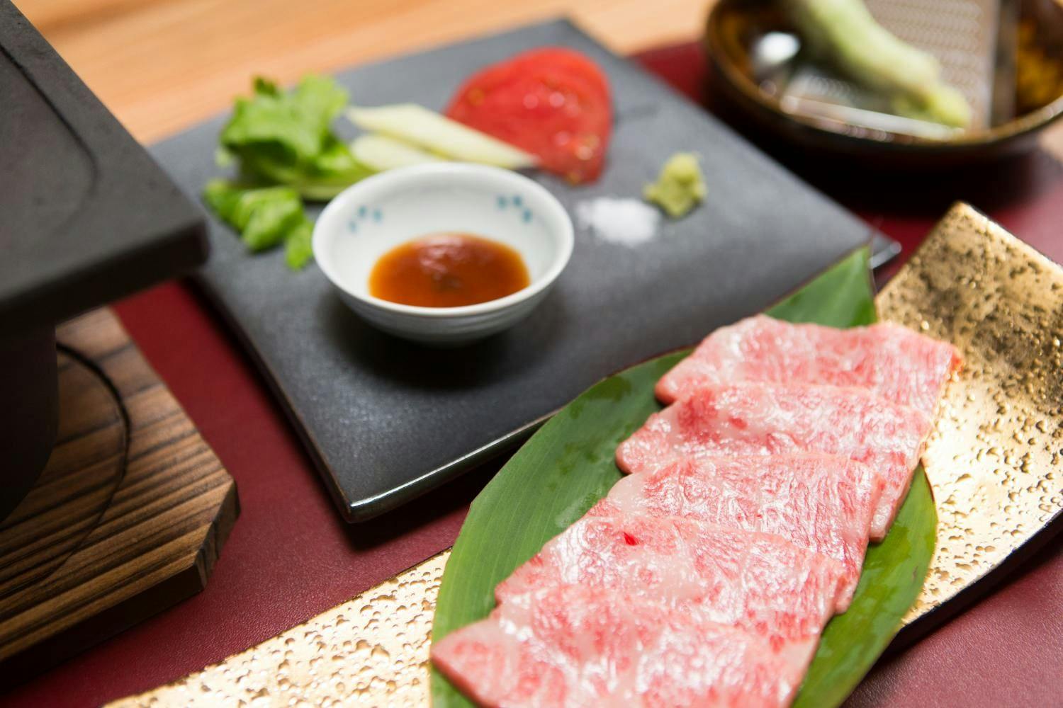 伊豆の新鮮なお魚と富士山の花崗岩プレートを使った黒毛和牛焼。 心に残る味をご堪能ください。