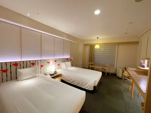 京都への出張で、もう何回宿泊したか分からないほど利用させていただいています。ホテルは、大きく分けて2種類に分類されると思っていて、1つは、「また、泊まりたいホテル」。そして、もう1つは、「1回宿泊したら、それでよいというホテル」です。申すまでもなく、こちらは「前者」です。交通の便も京都駅から地下鉄を利用し、丸太町駅でおりたら、たとえ雨が降っていても濡れずにチェックイン出来ます!また、全室、ツインかダブルの仕様ですから、とてもゆったりした部屋の作りになっているにもかかわらず、お値段もさほどお高くはありませんので、費用対効果もバツグンです!「ちょっとコンビニで買い物をしたい」と思うようなことは、よくあるものですが、なんと隣がコンビニです!ホテルの前は、烏丸通りですから、移動するのにタクシーは、バンバン走っていますし、バスに乗りたい場合は、すぐ近くにバス停もあります。勿論、地下鉄も!以上のようなメリットだらけのホテルですから、「また宿泊したくなる」のですね。いつも、ありがとうございます。