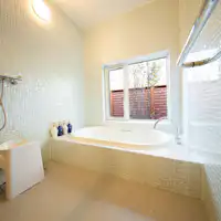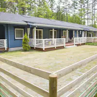 ヴィラタイプでポーチと専用庭が付き、2LDで寝室は独立したお部屋です。2家族でご利用の際もプライベートをお守りします。