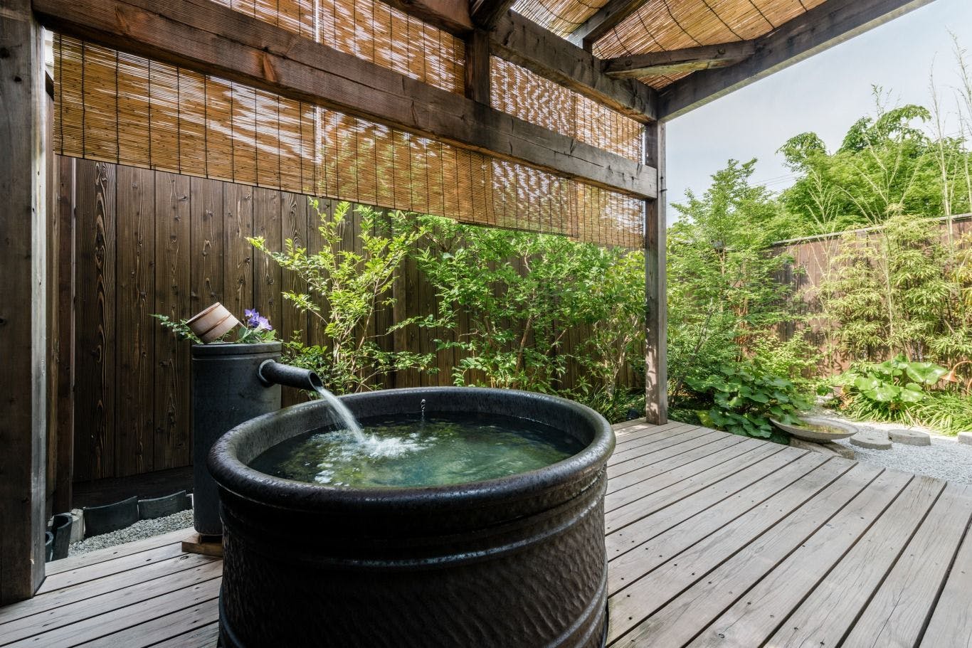 2018年12月NEW OPEN! 三十三間堂や京都国立博物館の近くに贅沢なヴィラが誕生いたしました。 お茶をテーマに、屋外そして屋内の庭を楽しめる、露天風呂付きの京町家です。 完全プライベート空間でゆったりとお過ごしいただけます。