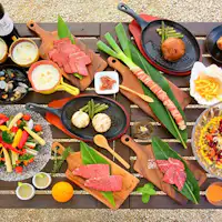 グラマラスBBQでは、準備も何もしないで気軽に石垣島の素材をふんだんに使った贅沢なバーベキューがお楽しみいただけます。 日が沈むとともに炎やランタンが浮かび上がりムーディでラグジュアリーな空間を演出します。 星空保護区認定の西表石垣国立公園内にあり、“星空観賞×BBQ”は炎空でしか体験できません。 バーベキューエリアは、各席が琉球石灰岩で上手にセパレートされており、 開放的なのに個室感もあり、周りを気にすることなく プライベートBBQを楽しむことができるようになっています。