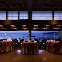 ひらまつがお届けする極上の美食旅― 相模灘がもたらす豊かな自然に恵まれた地、熱海。洋々たる海、穏やかな気候、そして恵まれた泉質から湯治場として栄え、多くの偉人・文豪にも愛された日本でも有数の避暑地です。 熱海の中でも、初島を初め、伊豆半島、大島、三浦半島、房総半島を一望できる景勝地に佇むのが、ひらまつによる“ヨーロッパの旅館”です。 お迎えするのは、日本の美を表現する現代の名工・木下孝一棟梁による数寄屋造りの建築。相模灘に育まれた滋味あふれる新鮮な魚介類を使ったお料理に舌鼓を打ちながら、和と洋の感性が紡ぐ、美しく贅沢なひとときをお過ごしください。