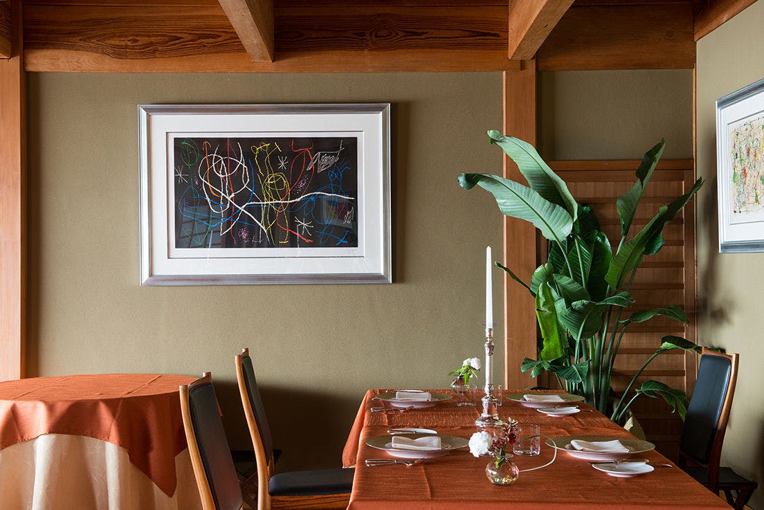 お迎えするのは、日本の美を表現する現代の名工・木下孝一棟梁による数寄屋造りの建築。 貴重な木材が数多く使われた建物は、今後再現することは難しいと言われるほど。 ご到着時やお食事の際には、この「和の空間」を存分に味わっていただけます。 和と洋の感性が紡ぐ、美しく贅沢なひとときをお過ごしください。