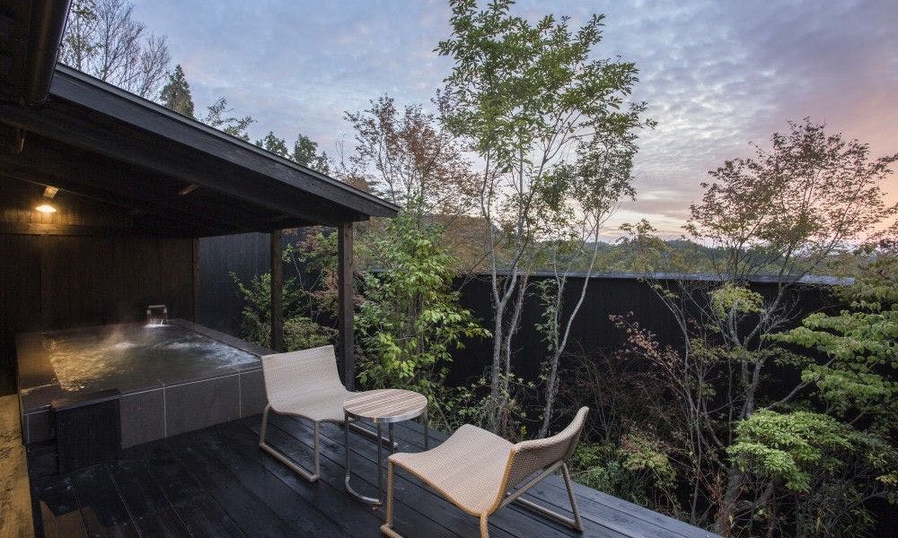 ・温泉: あり ・かけ流し: あり ・にごり湯: なし ・補足事項: 源泉100% 館内全ての湯船は源泉掛け流し100%の本物の温泉です。 全てのお部屋に露天風呂と内湯が備わります。 また敷地の頂に「天空の露天風呂」があり、貸切でご利用いただけます。 黒川温泉で最も標高の高いところにある湯船ですので、九州の雄大な山並みを大パノラマでご覧いただけます。 夜は天に輝く月と降り注ぐような星々を、早朝は雲海を眼下に、掛け流しの湯をお愉しみください。 ※予約制となっております
