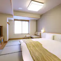 和ベッドを備えた和洋室となります。人数に合わせてご案内させていただきます。