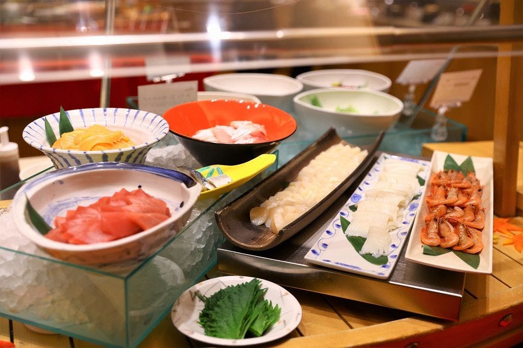 種類豊富な和洋バイキングをお愉しみください。ライブキッチンで出来たてのお料理もご提供。