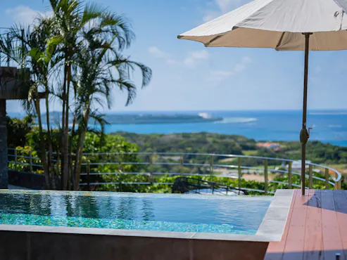 …━━ 2025年2月より温水インフィニティプールが誕生いたしました━━… 澄みわたるピュアブルーの空、樹々の緑 美ら海のきらめき、絶景のサンセット、五感で味わうとっておきの美食、満天の星・・・。 日常を超え誰にも邪魔されず、大切な人たちとだけ味わうここだけの至福。当館は貸切の宿なので、大切なご家族でもあるワンちゃんネコちゃんもご宿泊可能です。 美ら海を一望する高台に佇む、邸宅貸切ならではの贅沢なひとときをお過ごしいただけます。