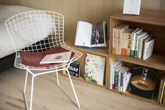 「本のある暮らし」を提案するホテルです。 客室は18室。その全室に温泉露天風呂と「あの人の本箱」が付き、それぞれ異なるインテリア。1つとして同じ客室はありません。 創造的思考を誘発する空間で、読書にふけるのはもちろん、自分の思考を整理したり、企画書を書いたり、何もしないでぼーっと過ごしたり。 思い思いの時間をお過ごしいただけます。