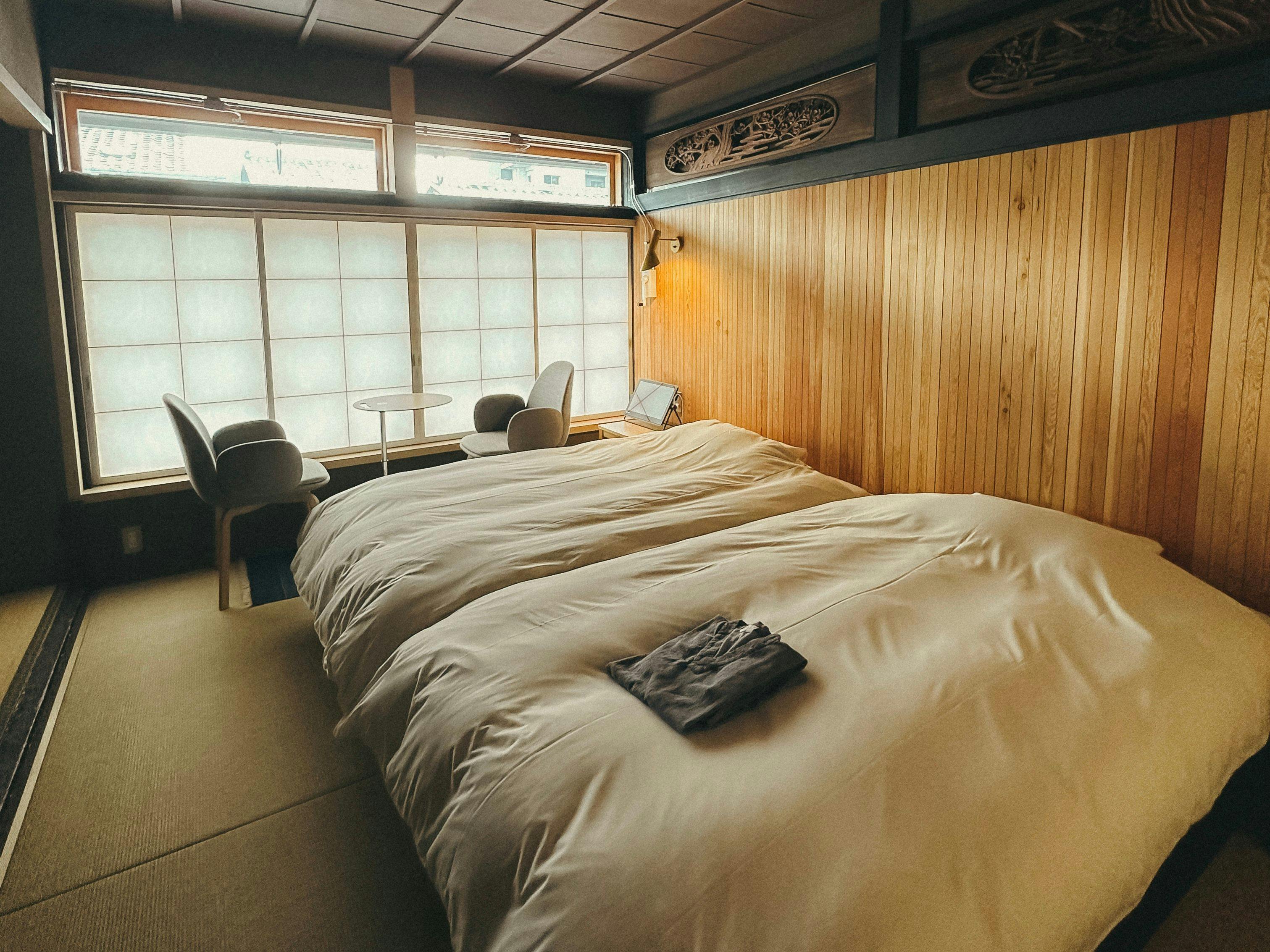 古き良き建物の雰囲気を壊さず、現代にもマッチしたおしゃれな空間、とても素敵なホテルでした。広い湯船に浸かった後、裸足で歩くと床から檜の香りが漂い癒されました。近江屋に2泊しましたが石畳になった旧東海道沿いにあるそのホテルの延長上には、江戸時代から続く和菓子屋さんやお茶屋さんがあり、ちょっとタイムスリップした気分!朝食は大津ならではの食材で、とても美味しかったです!オーストラリアから来られた方と一緒でしたが、外国の方にとっても日本をとても感じられるホテルなのではと思います。