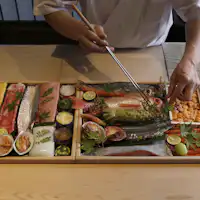 大阪から約30分。四季折々の豊かな自然の邸宅が寿司屋の宿になりました。 旬の素材を大切にした滋味溢れる料理をお愉しみください。