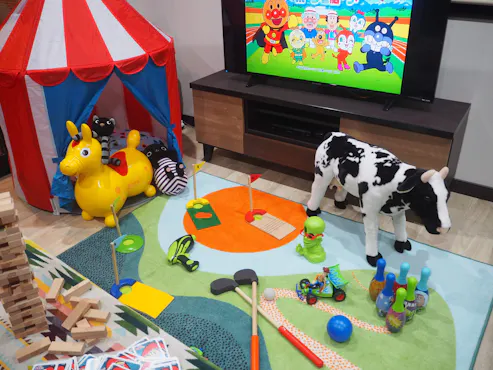 6みみみちゃん 2026/1/25備品も子ども向け宿としてないものがないほど揃っていますが、テーブルの角がカバーしてあるなど本当に心遣いがたくさんありました。食事なしのこどもでしたが、ご飯とお味噌汁、朝には卵焼きまでつけてくださいました。20分ほど猫と触れ合えたことも大喜びでした。テラスの木のおうちや室内のおもちゃにも大興奮で、一泊では帰りたくない!と大騒ぎ。そして子ども向け全開のお宿ですと、宿の中を楽しもうと行ったり来たり駆け回り、お食事がブッフェだったり、そうでなくてもまぁこんなものかなと思いながらも子どもの喜ぶ姿で満足度は高くなるのですが、大人も部屋から一歩も出ずに部屋の中で楽しめ、お料理もとても美味しくて、本当にリラックスできました。今度は連泊しようと心に決めています。