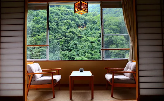 静けさの中にある渓谷の宿 全てのお部屋を渓谷に寄り添うようにご用意いたしました。 川のせせらぎに耳を傾けながら日常の喧噪を忘れておくつろぎください。