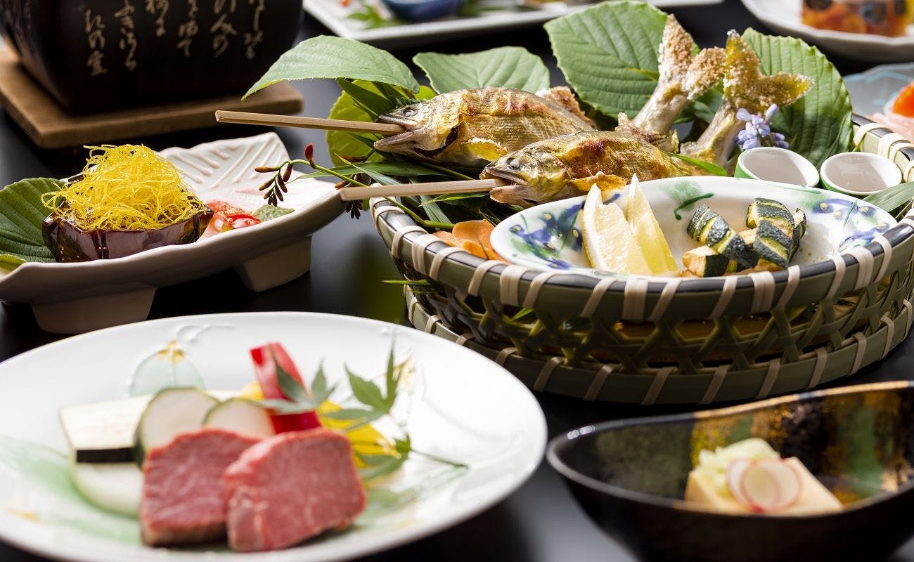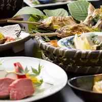 土産土法─当館に代々伝わる料理への心意気です。 新鮮さも美味しさも最高の状態で採れた地元食材にこだわり当館ならではの料理に仕立てた、心尽くしの膳をご賞味ください。