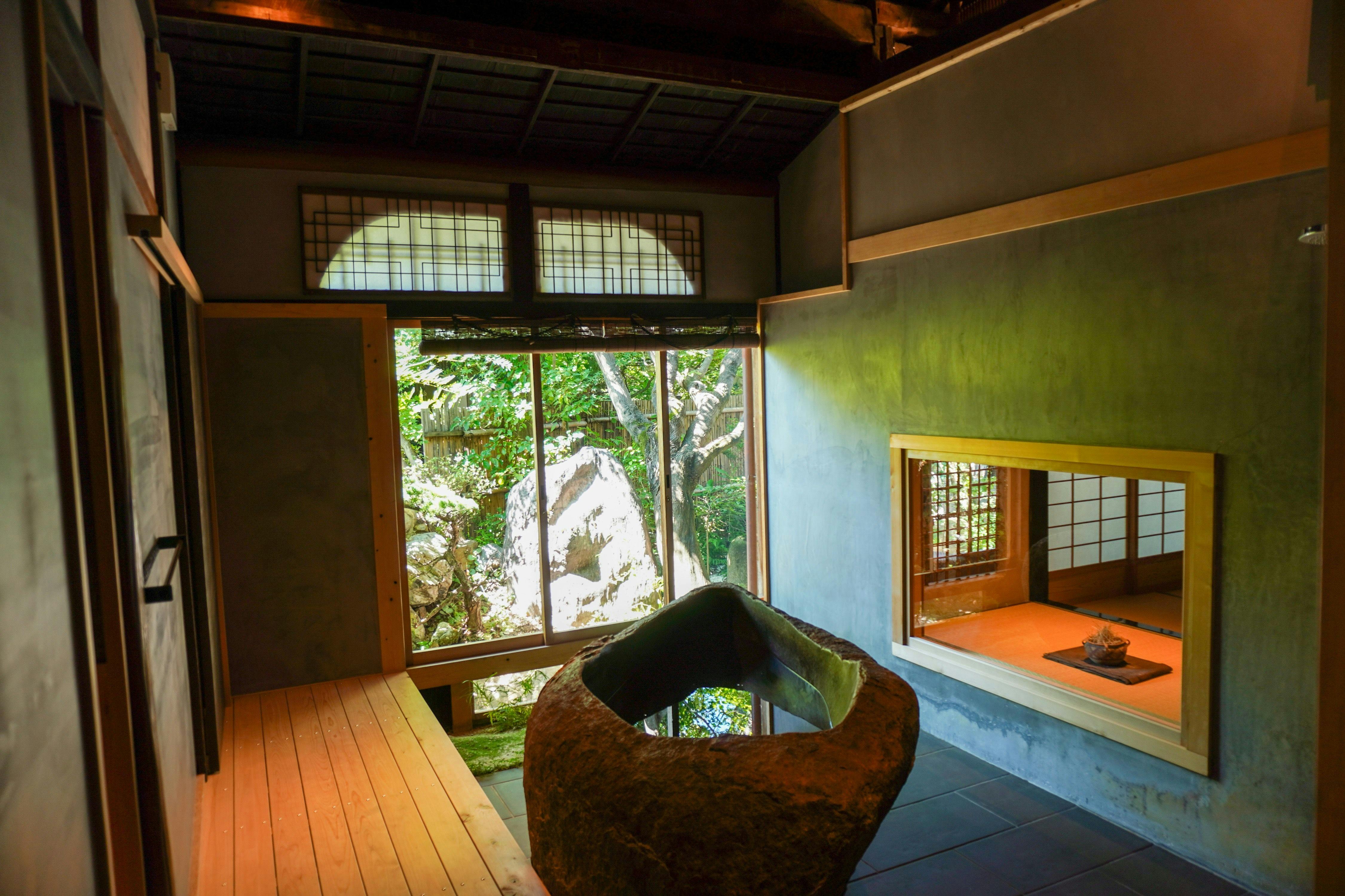 日本で初めて重要文化的景観に指定された八幡堀沿いに建つ「旧喜多邸」を改修。 全2棟の料理旅館に生まれ変わった。江戸時代の姿を残しながら、木・石というそれぞれがテーマを持った独立したプライベート空間を提供している。喜多邸の蔵をリノベーションしたレストランは、調度品や長い時の流れの中でついた傷などがそのままの風情漂う別世界。地元滋賀の野菜や近江牛や自らの田んぼで育てたお米を取り入れた極上の日本料理でリトリートという新たな旅の形をお楽しみ下さい。