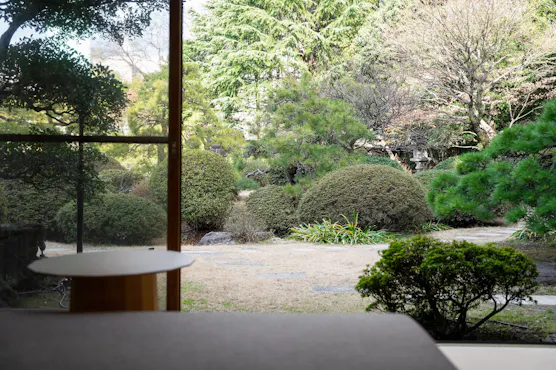 約 700 坪の日本庭園に呼応して建てられた「百年庭園の宿 翠水」は、