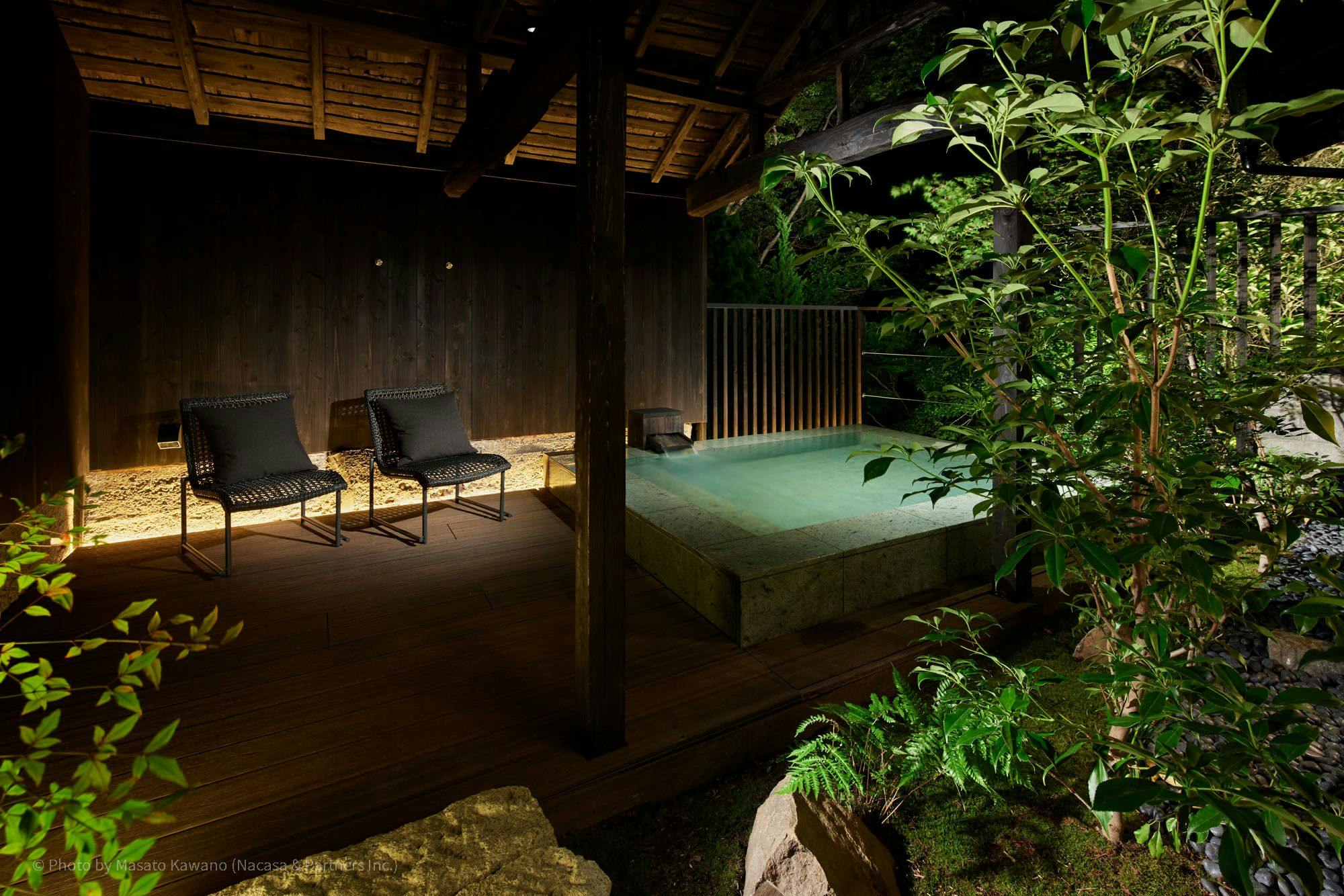 どちらの蔵にも土肥温泉源泉かけ流しの露天風呂と 40平米以上のテラスがございます。 デッキチェアをご用意していますので、 星空を眺めながらの一杯や読書をお楽しみください。