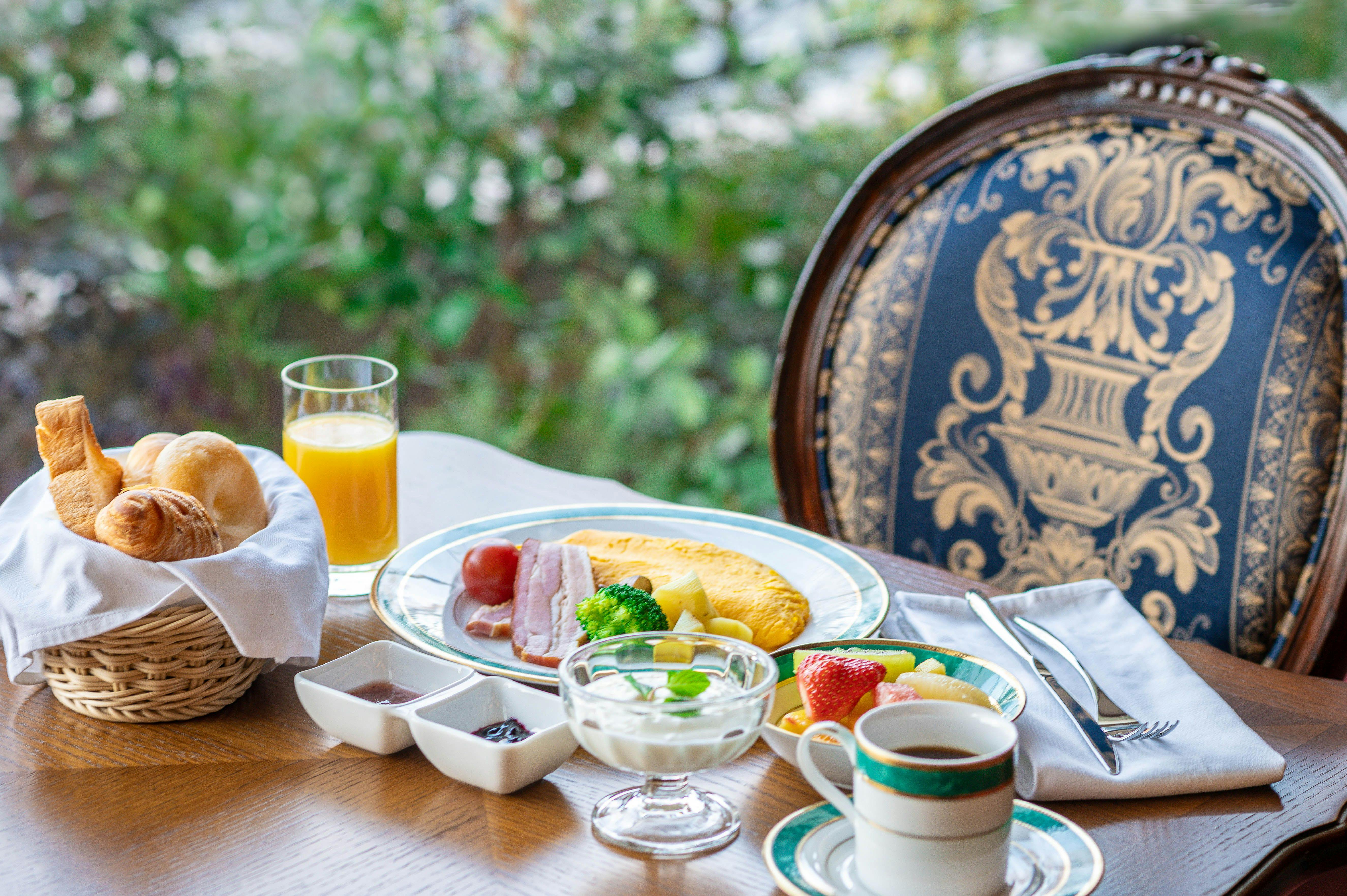 | 朝食 | アメリカンブレックファースト、和定食 3,300円(税込) |
