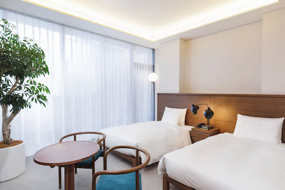 各棟に散りばめられた客室には、7つのスイートルームを含む表情豊かな全18室をご用意しております。 任天堂の旧本社社屋を受け継ぐ既存棟は、当時の建築様式や内装を活かしたお部屋、新築棟(安藤忠雄氏監修)のシンプルでスタイリッシュな居住性の高いお部屋。 すべての客室で間取りや内装、調度品が異なっており、泊まるたびに新たな発見をお愉しみ頂けます。